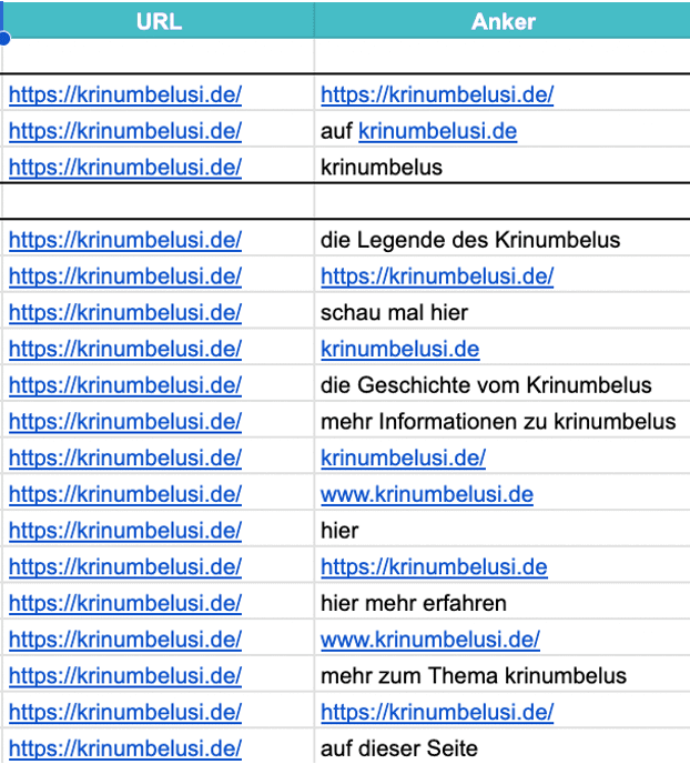 Die natürlichen Ankertexte bestanden aus einem gesunden Mix: