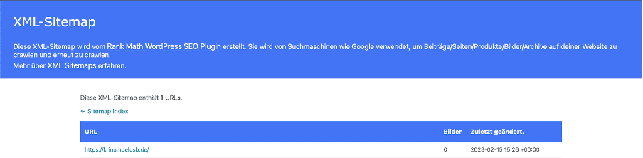 Daraufhin erstellte das Team eine Sitemap und überprüfte, ob diese in der Menüleiste angezeigt wurde. Dafür wurde der folgende Link angeklickt: