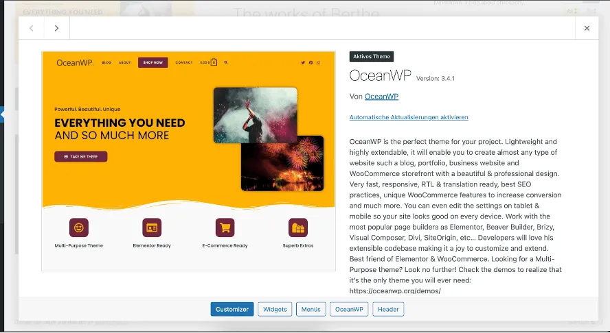 - Für alle Seiten wurde das Theme “Ocean WP” gewählt.