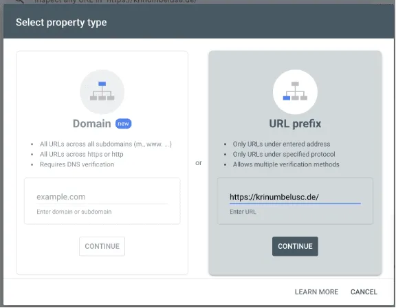 Schritt 1: die Webseiten als Property in der Google-Search-Console hinzufügen