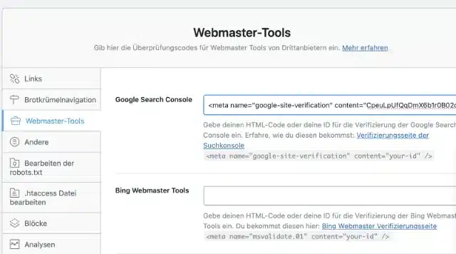 Zunächst loggte sich das Team in den bestehenden Google-Account ein. Dann wurden die folgenden Schritte für alle zehn Seiten realisiert: