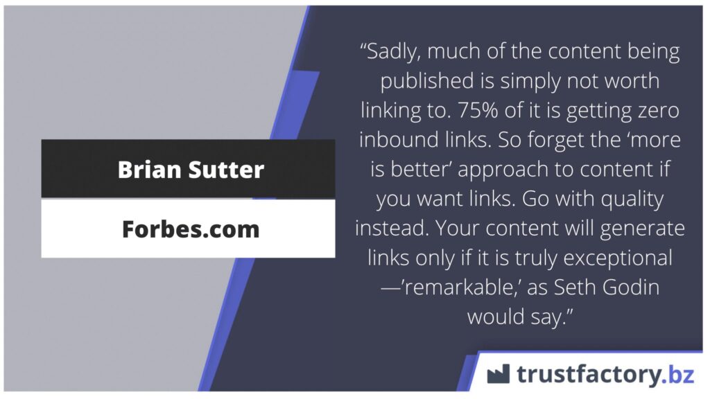 Gut rankende Webseiten verfügen über ein natürliches und ausgewogenes Linkprofil von User Generated Links, Citations, Presselinks und Content-Links. Letztere sind nicht einfach zu bekommen.