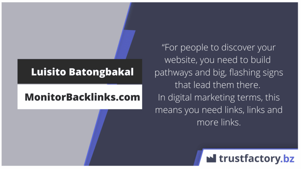 „Bei Trustfactory findest Du über 25.000 streng selektierte, wirkungsvolle und hochwertige Möglichkeiten Backlinks zu platzieren. Du kannst es gerne nutzen, doch wir wollen unser Netzwerk schützen. Vereinbare ein kurzes Gespräch mit uns, damit wir Dir Zugriff geben können.“ Max Bogdan