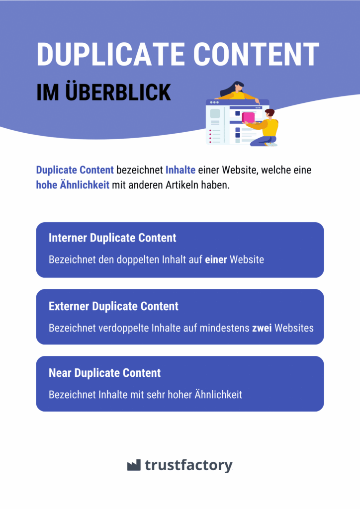 Die großen Suchmaschinen wie Google strafen Duplicate Content ab und honorieren einzigartige, hochwertige Inhalte. Der Grund: Um die Suchintention der Nutzer zu erfüllen, analysiert und kategorisiert die Suchmaschine Millionen von Websites. So wird gewährleistet, dass den Nutzern im Zuge einer Suchanfrage relevante Suchergebnisse zur Verfügung gestellt werden.
