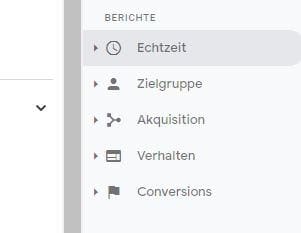 In der rechten Spalte findest Du die Übersicht über alle Berichte in Google Analytics.