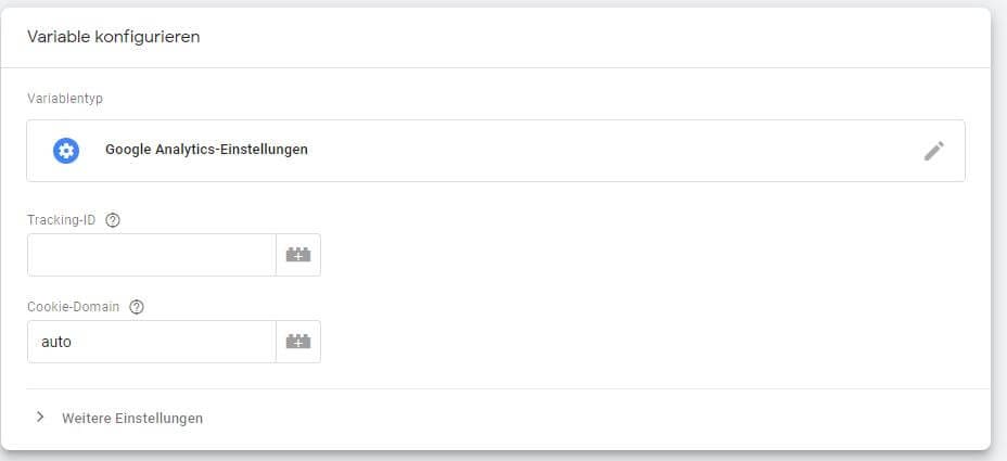 Du fügst die einzelnen Variablen Deinem Tag hinzu, um das gewünschte Ereignis zu tracken.