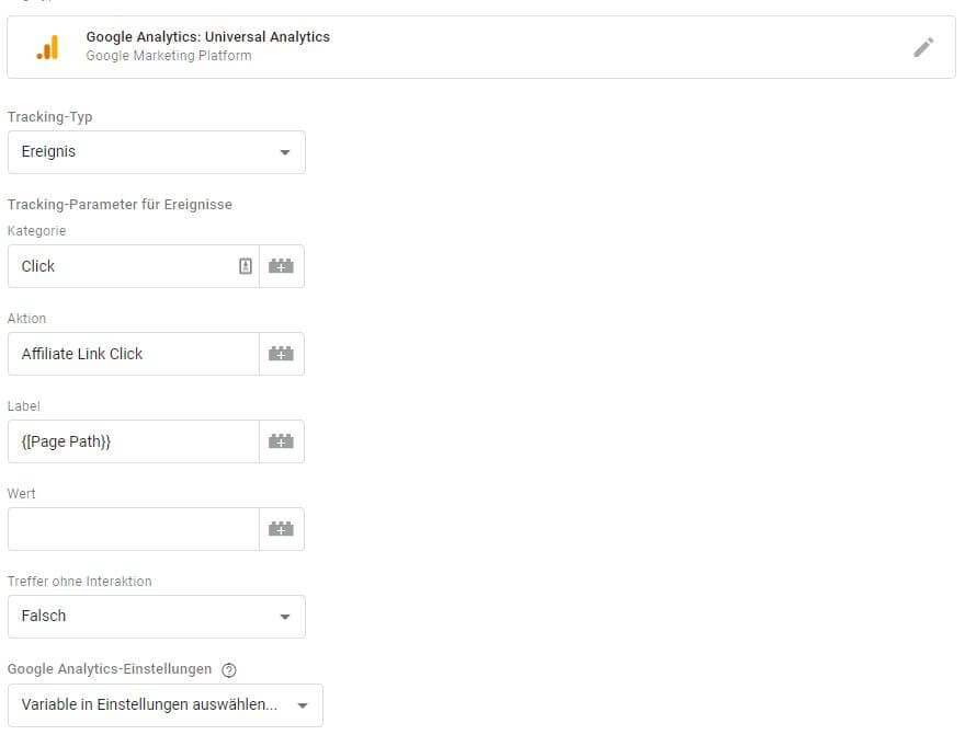 Über die Variablen kannst Du die Affiliate Links definieren. So kann Google Analytics unterscheiden, welche Klicks auf einen normalen und welche auf einen Affiliate Link gehen. Mehr dazu im nächsten Schritt.