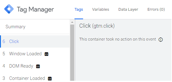 Links in der Summary sollte nun der Name Deines Tags, in diesem Falle “Affiliate Link Click” unter der Nachricht “Tags fired” erscheinen.