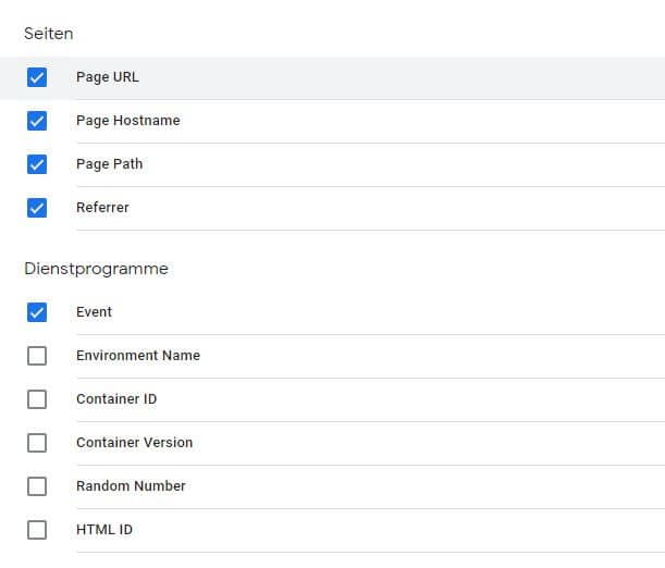 Als Letztes musst Du nun die einzelnen Trigger auswählen, die an Analytics übermittelt werden sollten.