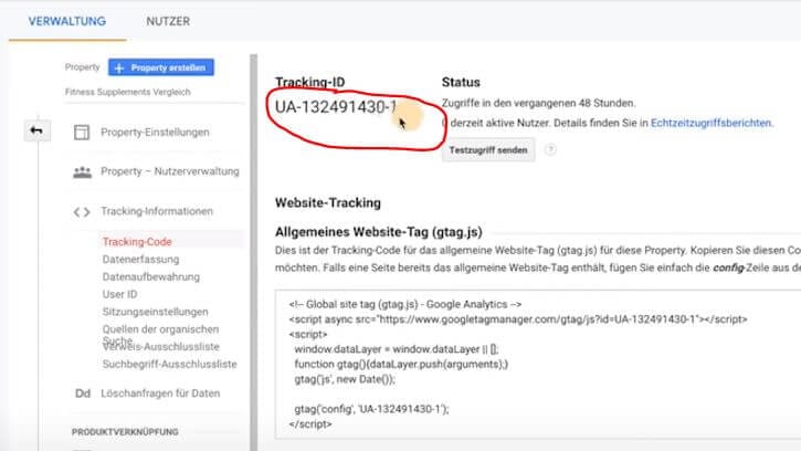 Du findest sie, indem Du ganz unten links auf “Verwaltung” und dann auf “Tracking Informationen” und “Tracking-Code” klickst: