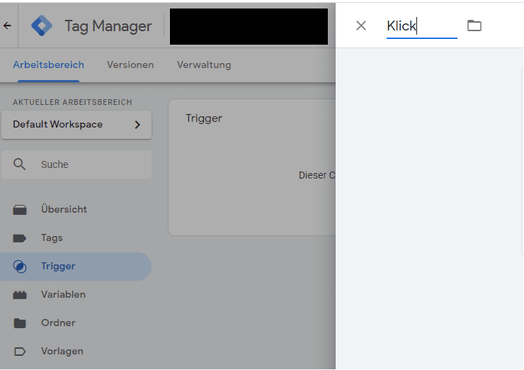 Klicke auf den Reiter im Menü und benenne die Triggerkonfiguration passend. Damit es übersichtlich bleibt, nennen wir in einfach mal “Klick”.