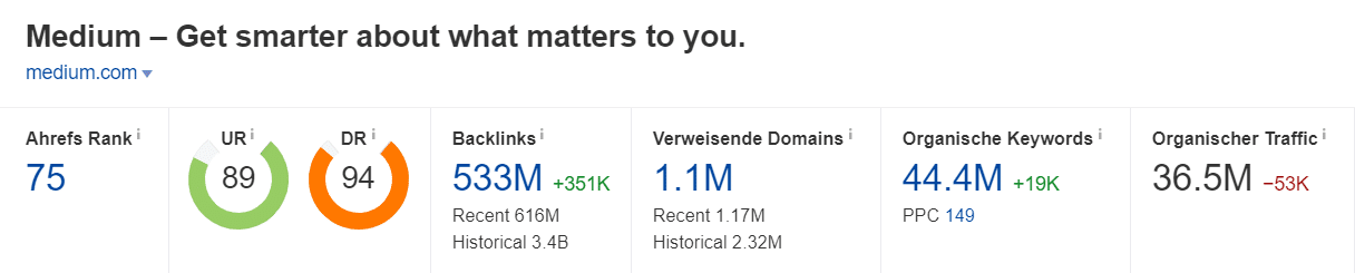 Da Medium mittlerweile enorm beliebt ist, können sich die SEO-Metriken auch sehen lassen.
