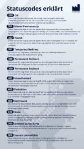Die fünf verschiedenen Statusklassen werden anhand ihrer Bedeutung und Funktion unterschieden, wobei die erste Ziffer des Codes die jeweilige Klasse bestimmt. Einige Statuscodes sind für SEO-Zwecke besonders relevant: Dazu zählen Codes aus den Statusklassen 3xx (wie 301, 302, 307, 308), 4xx (wie 401, 403, 404, 410) und 5xx (wie 500, 503), aber auch der Statuscode 200. Um SEO-Maßnahmen effektiv umsetzen zu können und die Leistung einer Webseite zu verbessern, gehört ein entsprechendes Verständnis der Statuscodes und ihrer Bedeutung unweigerlich dazu.